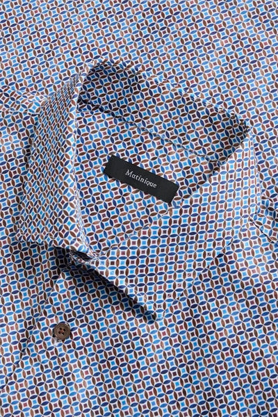 Floss Short-Sleeved Sport Shirt in Nut Brown Geo-Print