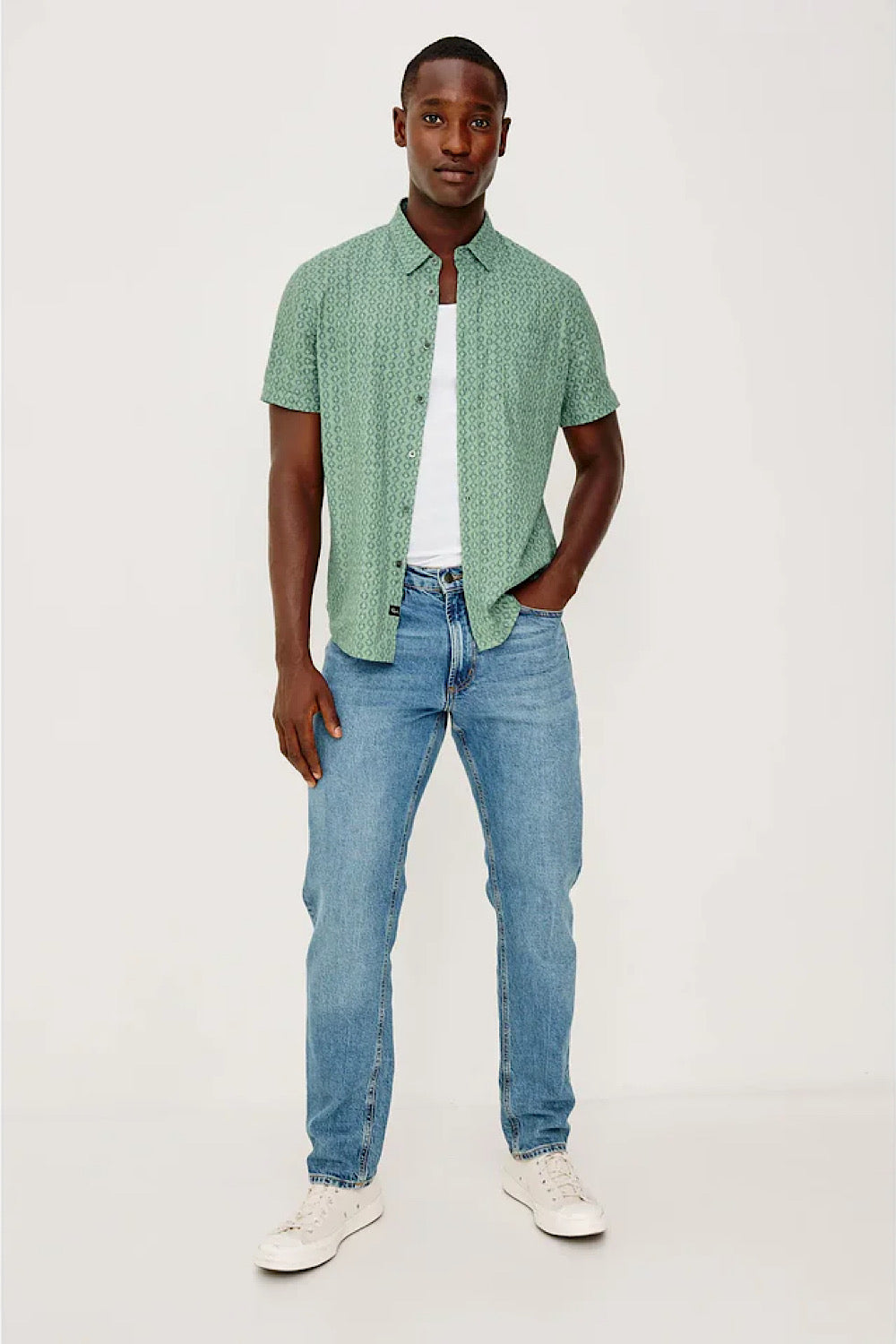 This Carson Short Sleeve Shirt is designed from a lightweight linen blend, ensuring breathability and comfort. Its traditional fit and single chest patch pocket enhance practicality, making it an ideal choice for casual occasions.