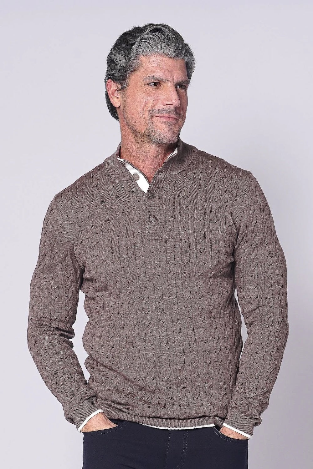 Elevate your everyday wardrobe with this sophisticated grey knit sweater that seamlessly blends comfort with contemporary style. The distinctive 3/4 button closure allows you to customize your coverage throughout the day, while the refined mock neck creates a polished, streamlined look that flatters any frame. Perfect for layering or wearing solo, this versatile piece transitions effortlessly from casual weekends to professional settings.