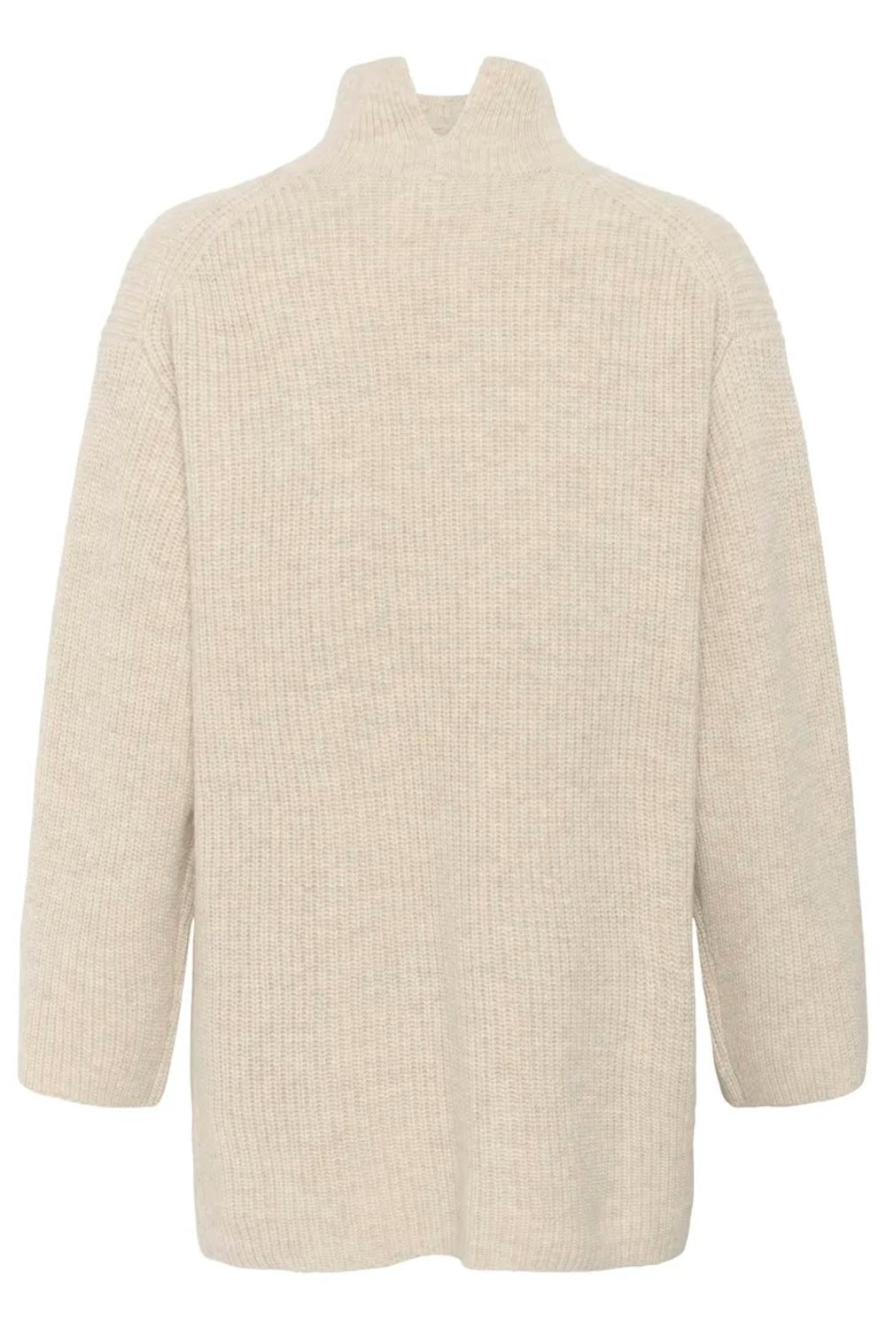 The Sofiya Sweater in French Oak Melange combines timeless elegance with modern comfort. Its distinctive ribbed design creates visual texture and flattering dimension, while the front high neckline offers sophisticated coverage and a polished silhouette.