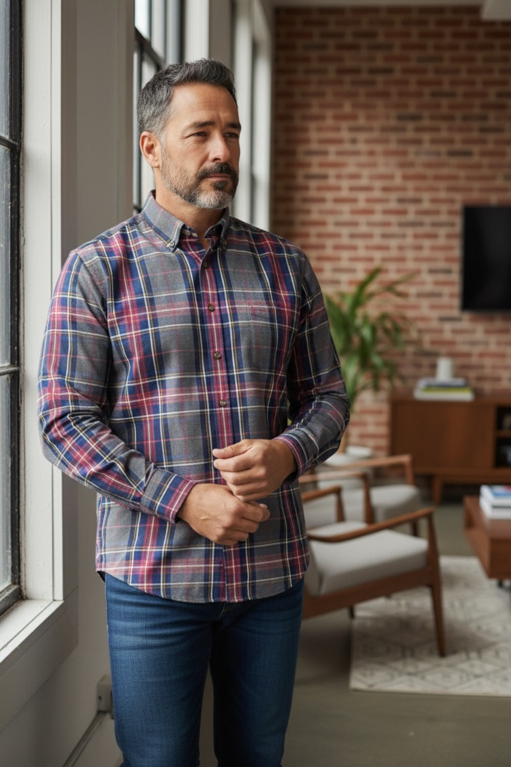This long sleeve button-down casual shirt combines a classic checkered design with the versatility of two fit options, ensuring a perfect match for your style. The button-down collar adds a refined detail that elevates your everyday look, making it ideal for both laid-back and semi-formal occasions.