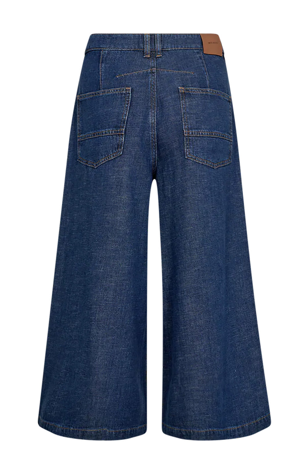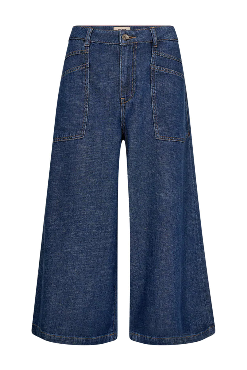 Culotte-style cropped jeans with a contemporary edge. The high-waisted, wide-leg silhouette creates an effortless, relaxed fit that flatters and moves with ease. Front patch pockets add functional style, while the dark blue wash pairs seamlessly with everything from tucked blouses to fitted tees.