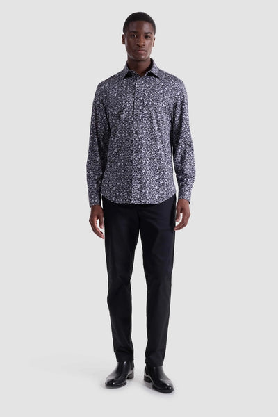 Julian Long Sleeve Woven Shaped Shirt in Navy Floral Print