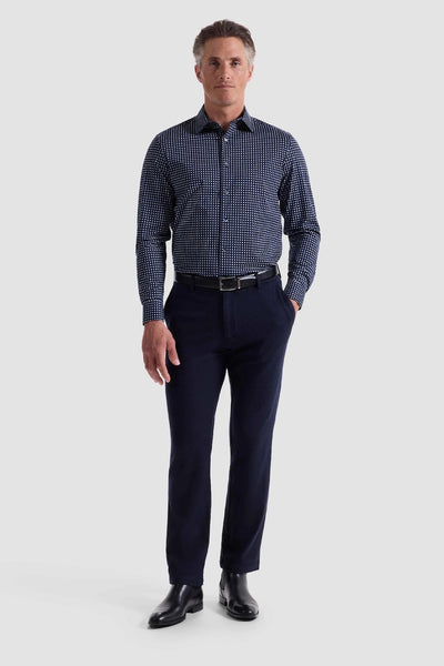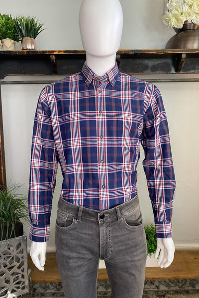 Julian Long Sleeve Woven Shaped Shirt in Navy Check