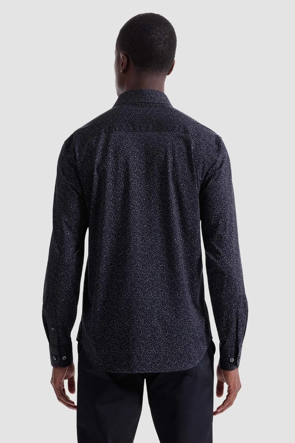 The James OoohCotton® long-sleeved shirt in golf club novelty print features a point collar and a curved hem for a sleek tucked or untucked look. The notched cuffs are adjustable to allow for customized fit and also convertible to accommodate cufflinks. OoohCotton® is a performance, double-mercerized, wrinkle-resistant, breathable, and easy-care cotton blend with 8-way stretch, quick-dry, and thermal comfort properties.
