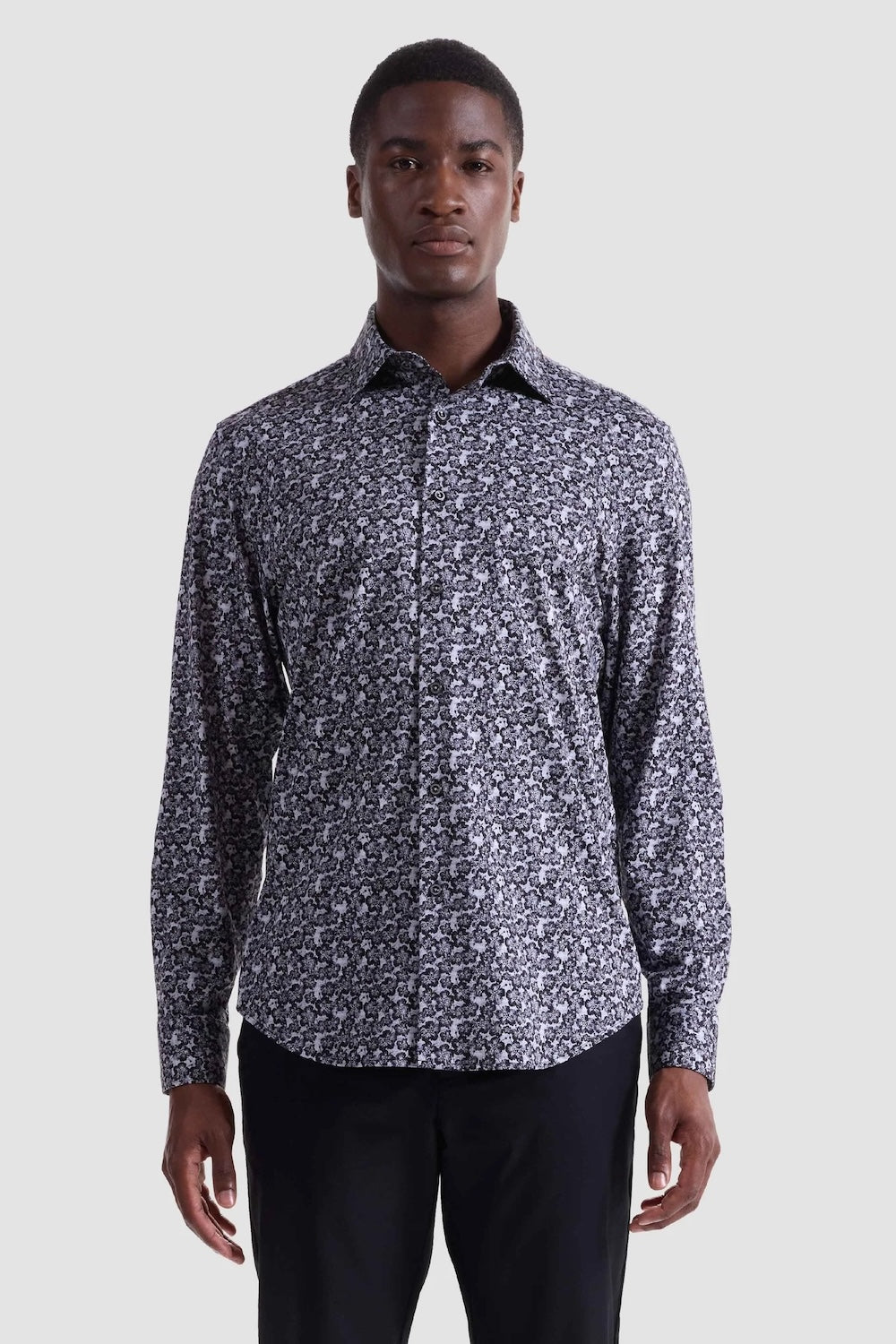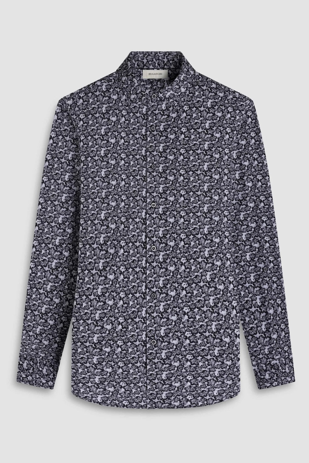 The James floral print OoohCotton shirt from Bugatchi features a point collar, adjustable notched cuffs, mother-of-pearl buttons and a curved hem perfect for wearing the shirt tucked in or untucked. OoohCotton is a performance, double-mercerized cotton with eight-way stretch. The wrinkle-resistant fabric is quick-dry and easy-care.