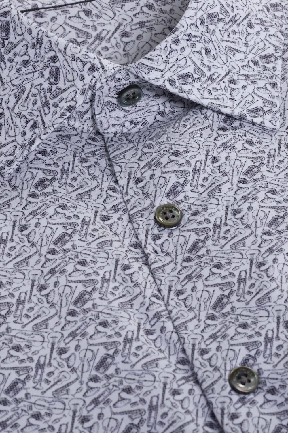 The James music theme novelty print OoohCotton shirt from Bugatchi features a point collar, adjustable notched cuffs, mother-of-pearl buttons and a curved hem perfect for wearing the shirt tucked in or untucked. OoohCotton is a performance, double-mercerized cotton with eight-way stretch. The wrinkle-resistant fabric is quick-dry and easy-care.