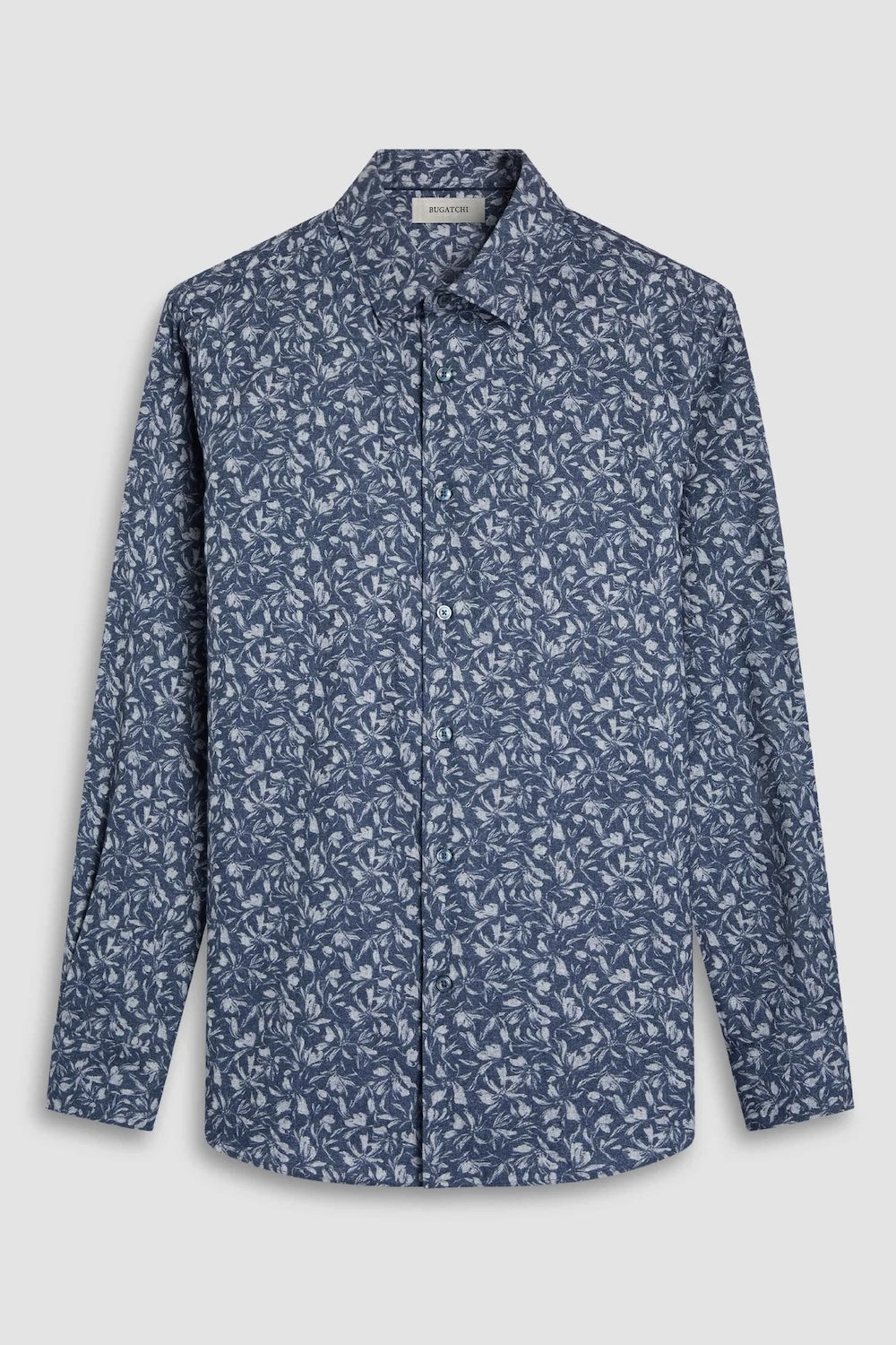 Julian Long Sleeve Woven Shaped Shirt in Navy Floral Print
