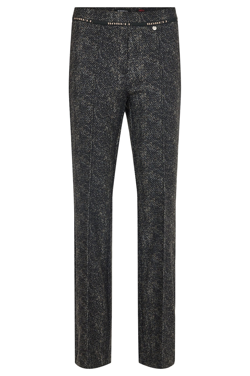 Meet the Joella Pants which are constructed from premium stretch fabric, these pants adapt to your body for all-day ease. The distinctive herringbone weave in striking black and brown tones brings depth and dimension to your look, while the high-rise silhouette flatters your figure and provides confident support. The pull-on waistband eliminates fuss, and the kick flare cut offers a contemporary edge that transitions seamlessly from office to weekend.