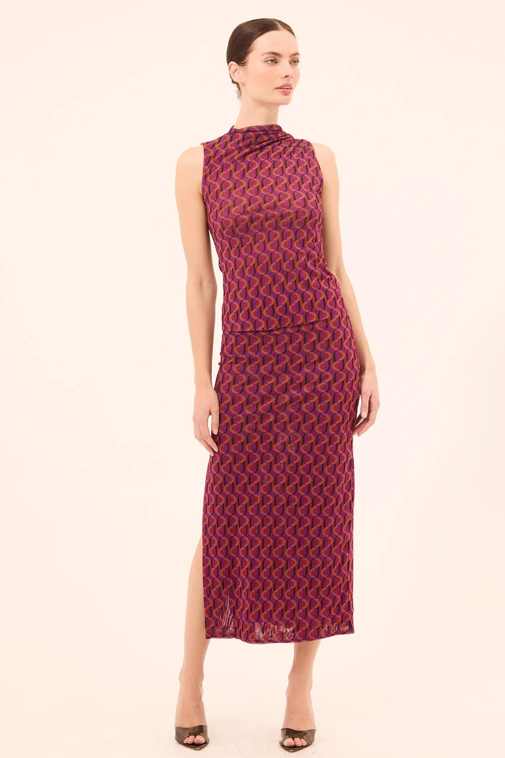 The Nena Top delivers effortless sophistication with its sleek, sleeveless silhouette and striking high neckline. Double-lined construction ensures a polished, structured look that flatters your frame, while the convenient pull-on fit means you're ready to go in seconds.