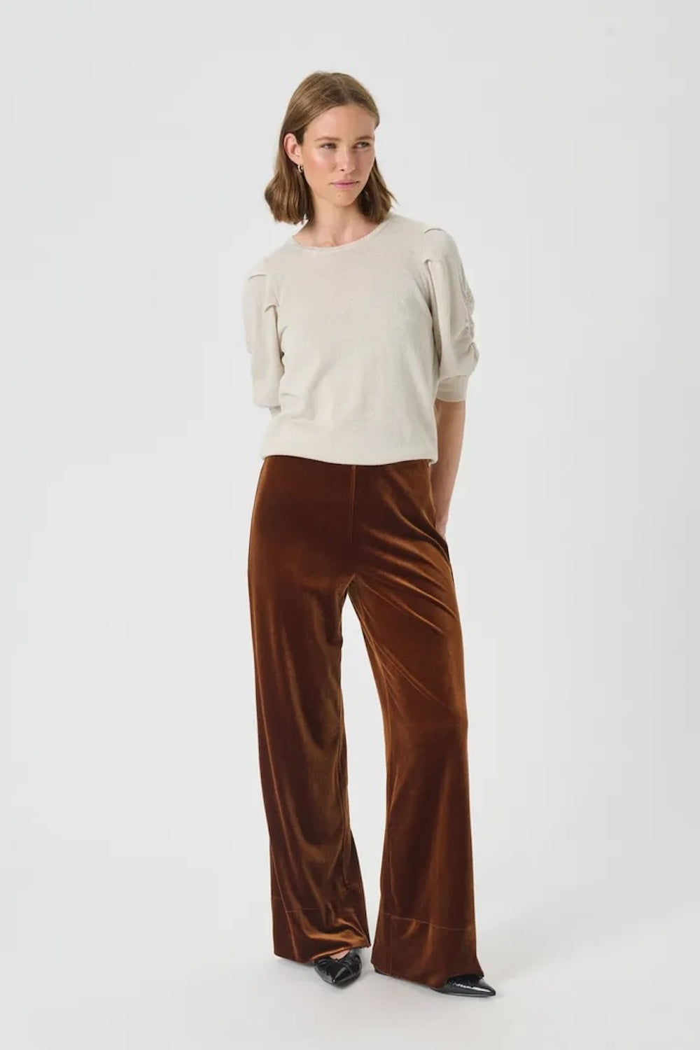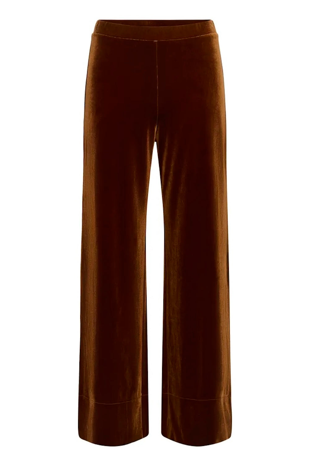 The Varla Pant combines comfort with contemporary style, featuring a luxuriously soft velour material that feels gentle against your skin. The wide leg silhouette creates an effortlessly chic silhouette that flatters various body types, while the elasticized waist ensures a secure, comfortable fit throughout your day.