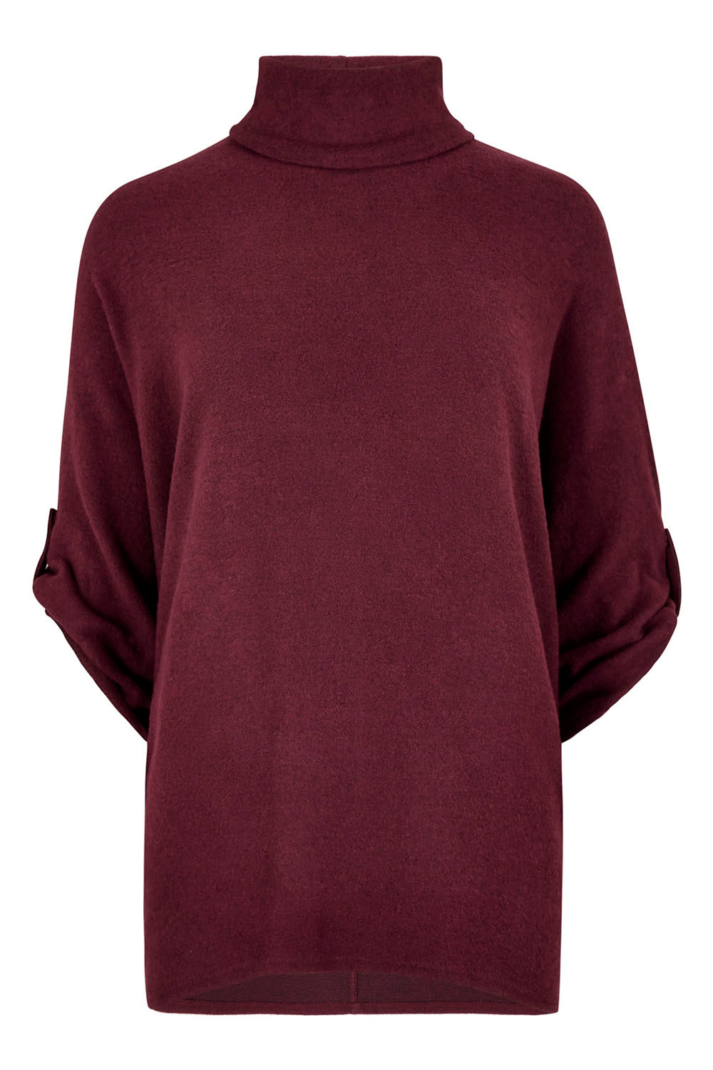 The oversized silhouette drapes beautifully for a relaxed, modern look, while the high neckline and batwing 3/4 sleeves with button detail add sophisticated dimension. Perfect for layering or wearing solo, this piece transitions seamlessly from casual days to cozy evenings.
