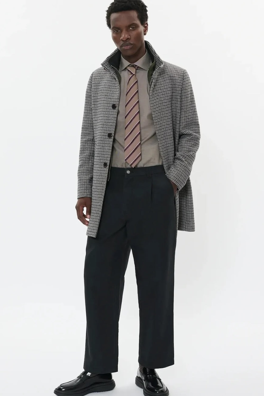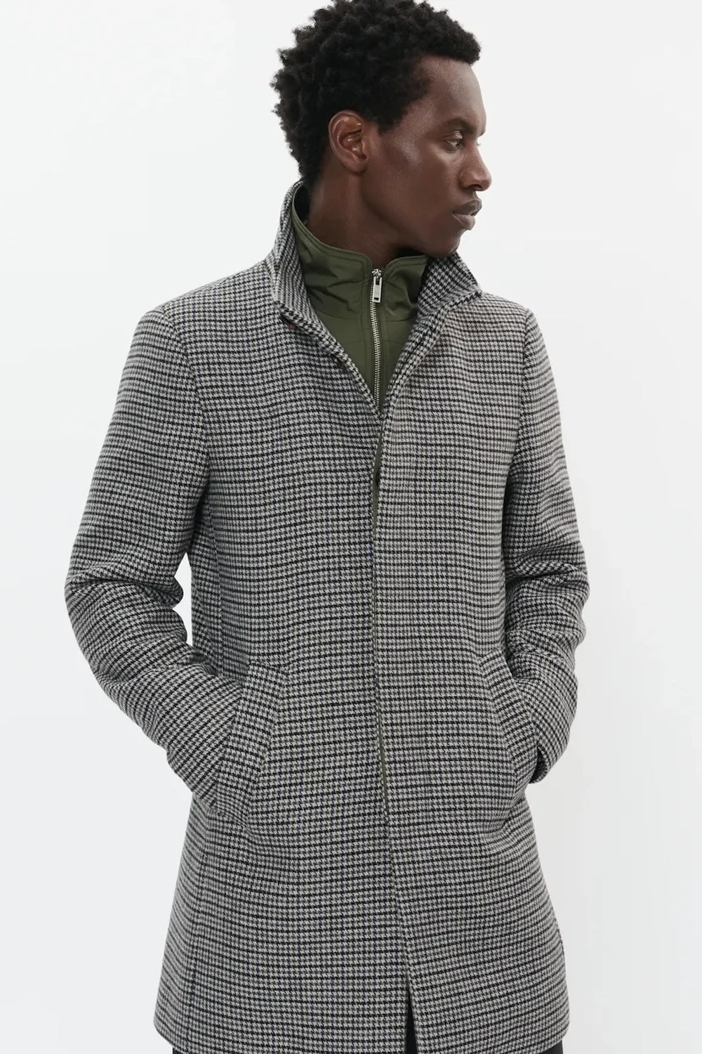 The Harvey Coat in Winter Twig combines timeless style with practical functionality. This sophisticated piece features a distinctive stand-up collar and classic side pockets for everyday convenience. The front showcases five signature logo buttons, while a hidden button closure ensures a polished, seamless look. A secure inner pocket keeps essentials safe, and the detachable zippered bib adds versatility for changing weather conditions. The back slit provides ease of movement, making this coat as comfortable as it is elegant.