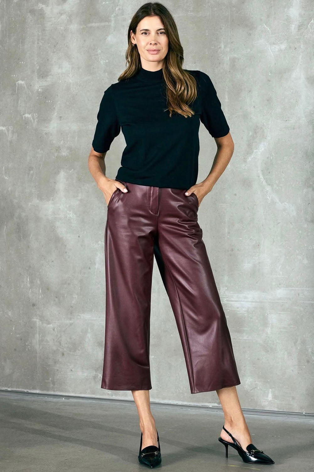 Step up your fashion game with the Cloe Faux Leather Pant, delivering a chic leather-inspired style that exudes bold elegance. These pants offer a relaxed fit for comfortable wear all day long, secured with a button and zip closure for ease. The angled pockets enhance the contemporary design while providing practical storage.