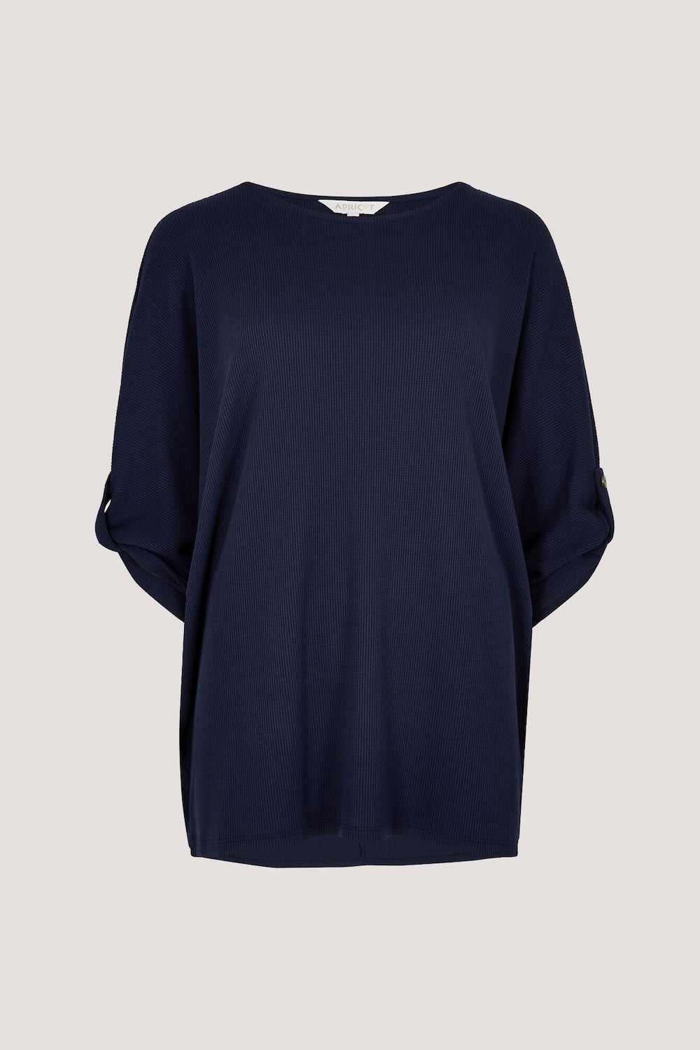 Waffle Crew Neck Button Detail Top in Navy