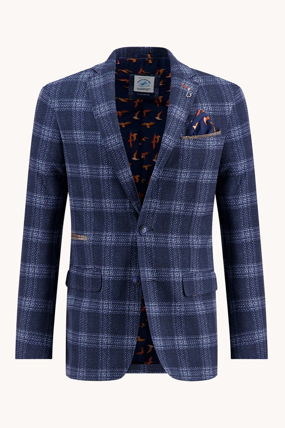 Elevate your wardrobe with the Travel Windowpane Sport Coat in Classic Blue. Featuring a timeless windowpane pattern and a refined patterned lining, this coat combines style with subtle sophistication. Designed for practicality, it includes a convenient chest pocket to keep essentials close. Perfect for travel or everyday wear, it offers you effortless elegance and comfort wherever you go.