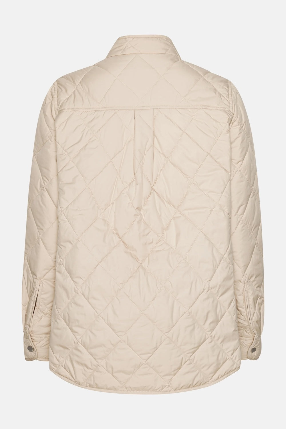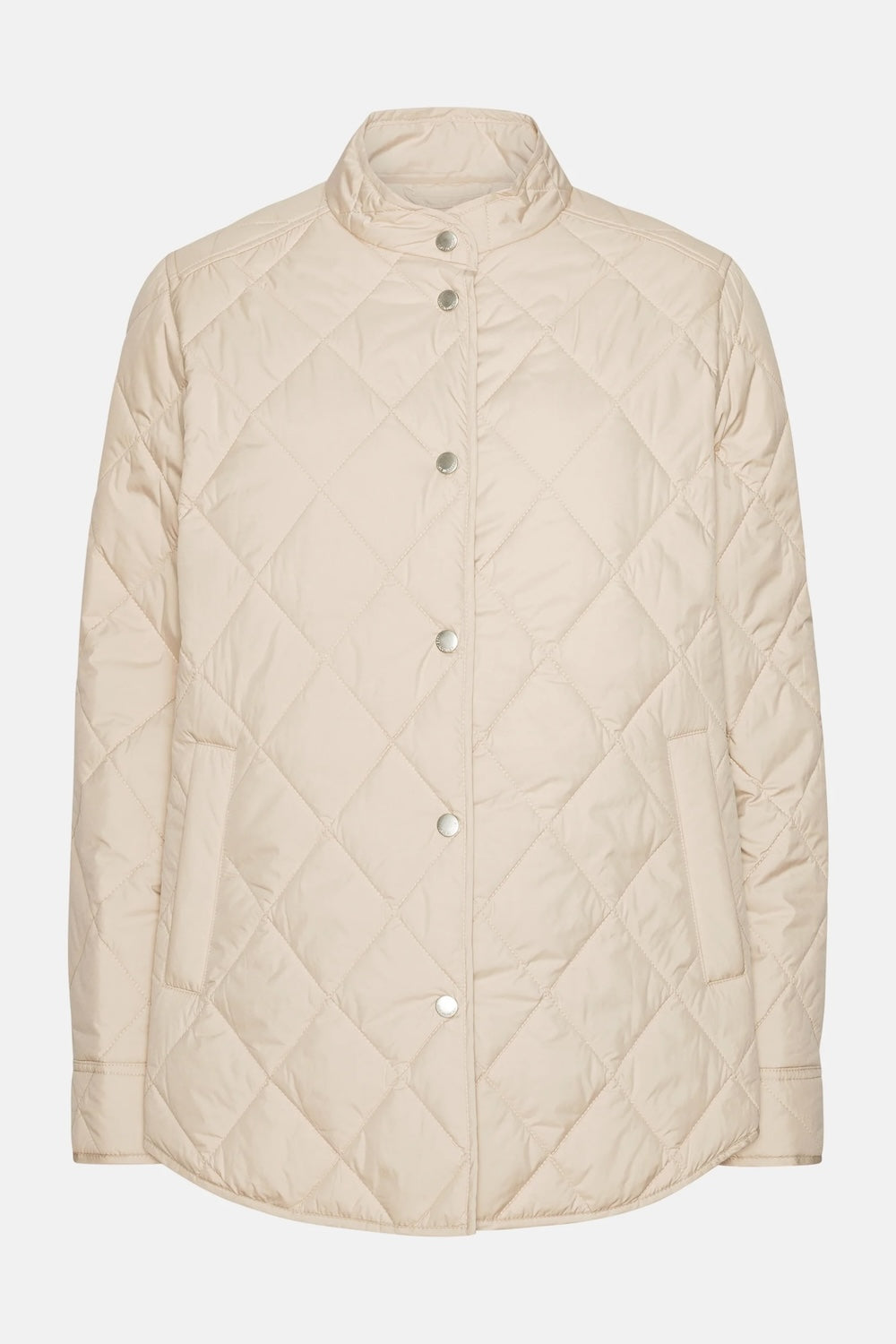 The diagonal quilted surface offers warmth without excess weight, enhanced by carefully considered details—a structured yoke with center-back pleat, distinctive Chinese collar, tailored cuffs, and softly curved hem—that convey quiet elegance. Practical slanted jetted pockets and branded logo buttons add both function and polish. Transition effortlessly from standalone wear for an understated aesthetic to layering under your raincoat for additional insulation.