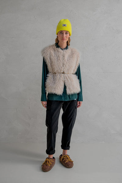 Experience effortless style with this Waistcoat in Naturel, crafted from soft fabric for all-day comfort. Featuring a convenient hook closure, it ensures a secure fit while adding a sleek finishing touch to your outfit. Perfect for layering, this waistcoat blends comfort and elegance seamlessly.
