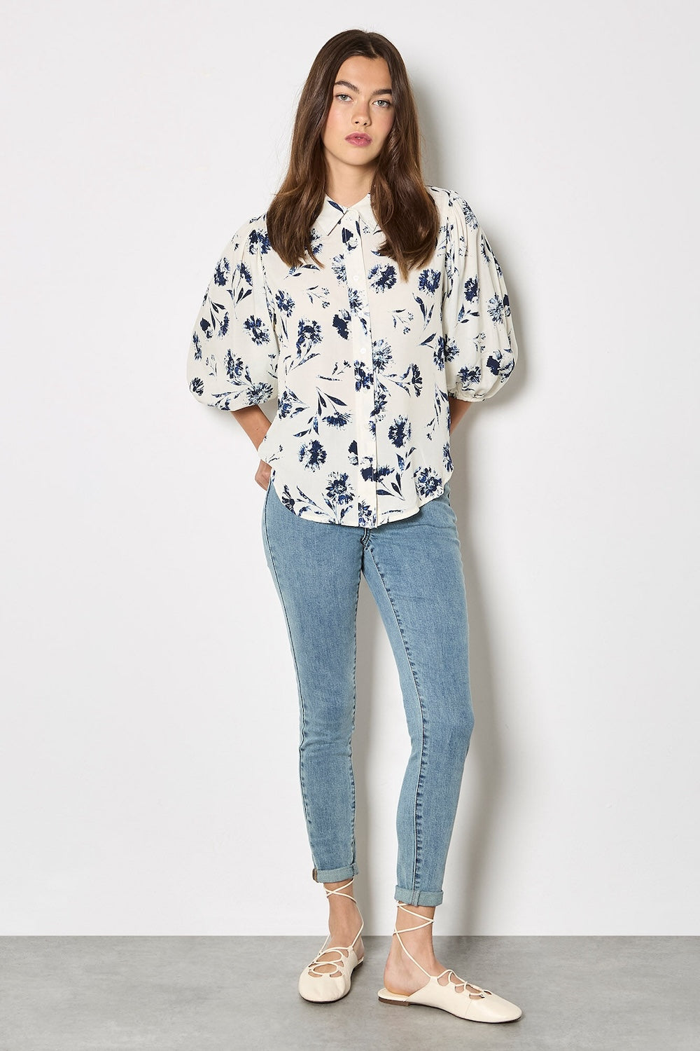 This pressed daisy print shirt combines timeless elegance with modern comfort, featuring a classic collar, button-down front, and distinctive cropped balloon sleeves. Crafted from soft, breathable woven fabric, it's the perfect piece to refresh your weekly styling rotation with feminine florals that work beautifully across seasons.